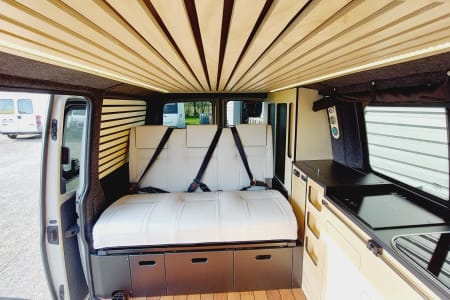 Equipé d'une banquette arrière 3 places convertible en lit et d'un toit relevable, ces 2 couchages vous offres un bon confort.