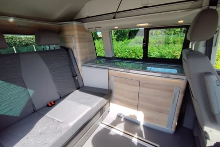 - Boite automatique 150CV DSG7 - 4 places carte Grise - 4 couchages - Toit relevable avec fenêtres et couchage double - Banquette arrière isofix modulable pour 2 couchages et coulissante - Chauffage stationnaire ( Pas besoin de mettre le contact) - Réfrigérateur à compression 41 Litres - WC cassette en option - Table dinette - Penderies, nombreux rangements - Rideaux avant, arrière et latéraux - Douchette extérieure - Bac évier inox 1 cuve - Plaque 2 feux gaz - allumage piezzo