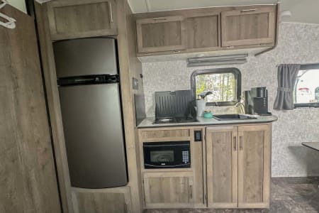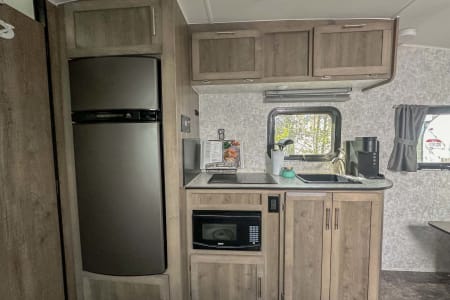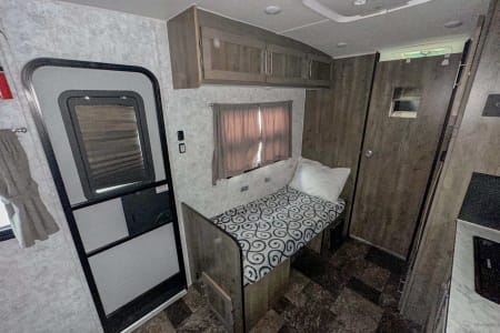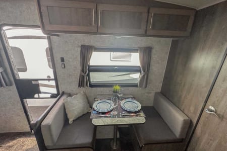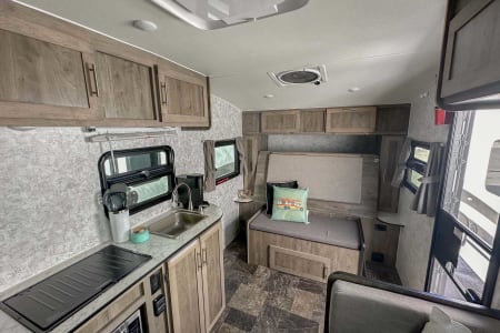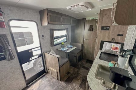 La fonctionnalité n'est pas non plus compromise : il peut facilement accueillir une jeune famille de trois personnes (plus votre ami à quatre pattes !) avec un canapé-lit gigogne et un lit dinette convertible. Le Classic est entièrement équipé d'une cuisinière, d'un évier, d'une douche, d'un four micro-ondes, de toilettes et du chauffage – tout ce dont vous avez besoin pour un séjour de camping confortable et une évasion temporaire de la routine de la vie quotidienne. Kit de vaisselle inclus dans votre réservation.