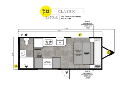 La remorque Classic garantit que vous n'avez pas à sacrifier le confort et la commodité au profit d'une conception légère. Pesant 2470 livres, il constitue la solution idéale pour le SUV ou la fourgonnette de votre famille grandissante. Aucun obstacle ne s'oppose à l'attelage de cette roulotte et à l'embarquement pour un week-end spontané à la campagne ou une aventure palpitante vers des vues panoramiques pour des vacances d'été.