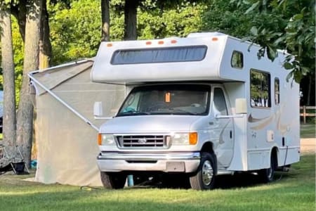 This 2004 well maintained Ford E350 Thor Four Winds 5000 has very low mileage on engine and tires. This Triton heavy duty V8-5.4 engine has the power get you where you want to go with ease. The brakes, battery and outside awning have all recently been updated and replaced. The backup camera and GPS navigation system are up to date and easy to use. There is ample room in this comfortable 22.6 ft length of living space that can sleeps 5-6 and has 3” mattress toppers. There is an ample sized bathroom with shower and skylight. Plenty of full amenities plus kitchen supplies and bedding to enhance your camping experience. Comes with 14' Solera attachable screen room when extra space is needed.. New updated 2024 hot water heater to ensure hot water as needed. Includes a more than sufficient heater and back up generator to use as needed. Great for all weather camping.