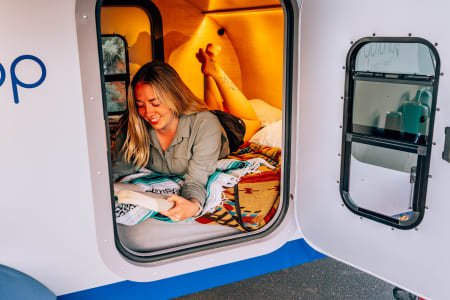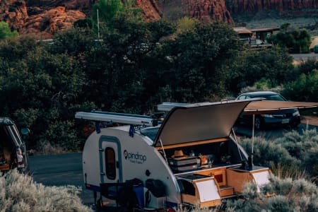 Everything you need to camp comfortably - powered by two on-board solar panels plus an inverter so you can boondock without power or water hookups! Take this awesome 'hotel room' with you on your next road trip or let us set it up at a campsite for you!