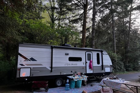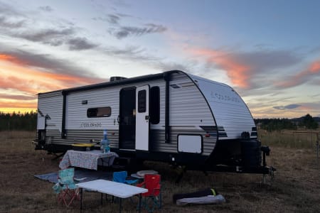 Welcome to your family's home away from home! Our 2024 Dutchman Colorado 26BHCWE RV travel trailer is the epitome of comfort and convenience for your next adventure. With sleeping space for up to 8 guests, it's perfect for family vacations or group getaways. Inside, you'll find a cozy living area, a fully-equipped kitchen, and a spacious bathroom, ensuring all your needs are met on the road. Outside, a retractable awning provides shade for outdoor gatherings, while the exterior kitchenette makes al fresco dining a breeze. This RV offers the ideal retreat for crafting memorable memories. Book now and embark on your unforgettable journey!