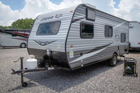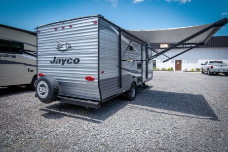 You can't go wrong with a Jay Flight SLX 7 travel trailer by Jayco. These lightweight 7'-wide models feature a fully integrated A-frame, stabilizer jacks with two sand pads, plus a Magnum Truss roof system with seamless DiFlex II material for a strong, sturdy unit made to last. Each model includes brushed nickel faucets, pleated window shades, a bath skylight, plus a premium multimedia sound system with MP3/iPod input jacks and Bluetooth connectivity for your entertainment needs. These travel trailers also include Goodyear Endurance tires that are made in the USA, a front diamond plate, and a power awning with LED lights that will create an outdoor living space you are sure to love!