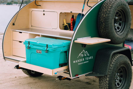 Camping has never been easier with our custom-built teardrop trailer! This trailer was built by the amazing team at Wander Tears and comes fully furnished with everything you need for a memorable camping trip!