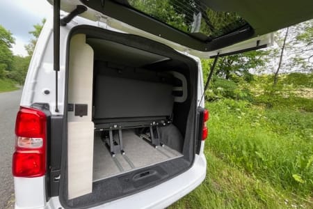 Pour ceux qui souhaitent partir jusqu'à 5 avec tout ce qu'il faut pour être autonome, le PANAMA est fait pour vous ! Cuisine, frigo, douchette extérieure, auvent, chauffage, et panneau solaire !