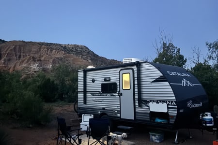 Step into our delightful travel trailer, where comfort meets adventure for couples and families! This cozy yet spacious home on wheels comfortably sleeps up to 5 happy campers.