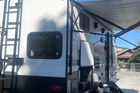 Includes TV and stereo with indoor and outdoor speakers. Features large awning with led lighting.