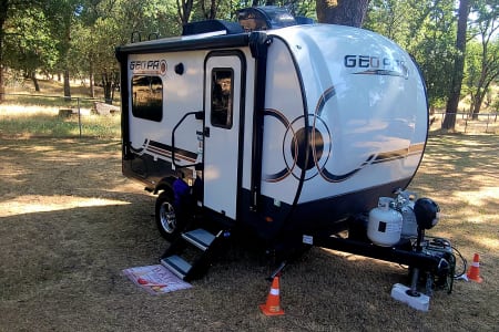 The Rockwood Geo Pro 15TB is a great walkable travel trailer for a single person, couple, or couple with a child. The dinette can either convert to a King or move the table for two twin size beds. Bathroom with shower, TV, awning and all the great things this camper comes with, you just can't go wrong. If you need a small camper with a king bed this is your winning ticket.