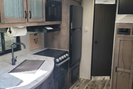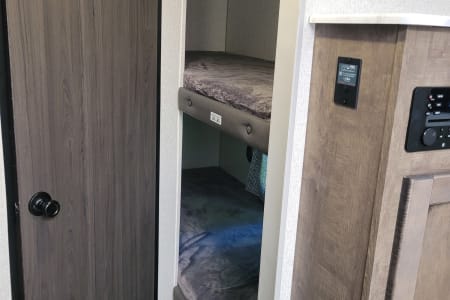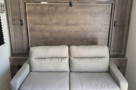 Our lightweight 2022 Sonic is perfect for the weekend getaway and long road trips. Stocked with everything you need to have a stress-free trip. All you need is food, bath towels and bed linens. Includes large 8cf fridge. Cook breakfast on the outdoor stove, play cornhole, sit by the fire and roast smores with included chairs and sticks or enjoy a quiet evening watching your favorite movie or playing a board game. Pet and family friendly! Two twin size memory foam bunks can easily sleep 2, a queen memory foam murphy bed and a convertible dinette can accommodate 4 adults. Easy to tow with practically any SUV or truck. Has heater and AC with a digital thermostat to get you through any weather. Listen to your favorite tunes indoors and out with the Bluetooth entertainment system. Generator included for a nightly fee.