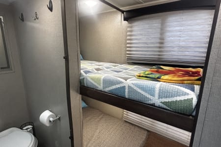 This PET FRIENDLY 24’ bunkhouse is a travel trailer that embodies a perfect blend of compact design, versatility, and family-friendly features. With a length of 24 feet, this trailer offers a manageable size for towing while providing a surprisingly spacious and comfortable living space, sleeping 5-6 people.