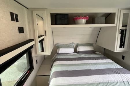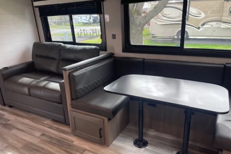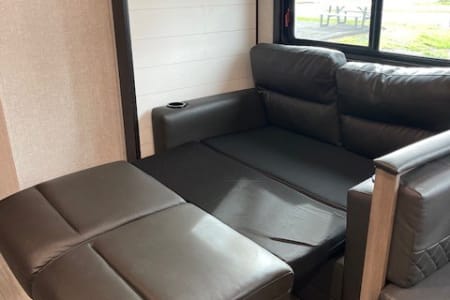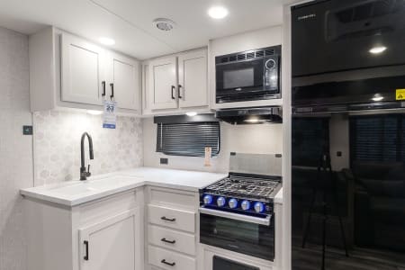 Many basics are provided with your rental, including utensils, cookware, games, towels, Blackstone Flat top grill, hitch and sway bars, linens and comforters. We think you will enjoy the outdoor sink and refrigerator which makes camping super convenient.