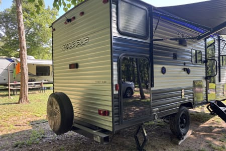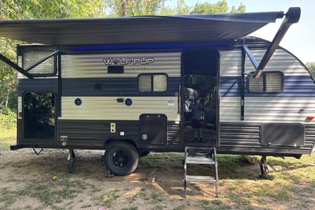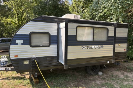 Get ready for some comfortable accommodations after you play outdoors with your RV friends at your favorite state park campsite with this Cherokee Wolf Pup Black Label travel trailer. You can sit and talk under the power awning all night thanks to the LED light strip at the awning, or you can play games at the U-shaped dinette slide out inside. The dinette also doubles as extra sleeping space if your kids' friends want to stay the night, and everyone can enjoy some privacy when getting ready in the bathroom that includes a toilet and shower. The chef will love having a cooktop and microwave to make meals and snacks, as well as a round sink and counter space to clean up everything afterwards. As you contemplate which adventure is next on your list, make sure you include the Forest River Cherokee Wolf Pup Black Label travel trailer or toy hauler in your planning! Since these units are lightweight and easy to tow, it won't be a burden to transport them to the campsite, yet they still come with a wide array of features to make your journey comfortable. You'll find four stabilizer jacks to keep your trailer secure after you've set everything up, and the outside shower with hot/cold water is going to be beneficial for rinsing off your muddy feet or your dog's paws. Some of the features that are unique to the Black Label portion are the thermo-foil arctic insulation, pillowtop mattress, gel-coated fiberglass exterior, battery minder, and oversized bunk pads