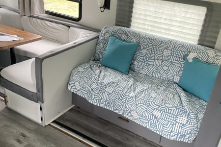Roomy and wonderful place for family and friends to enjoy the great outdoors! Renovated with all new beds and flooring updated. Equipped with 4 bunk beds, 1 queen, dining with seating for 6, full bathroom includes a tub shower, kitchen includes a fridge, microwave, stove top and lots more.