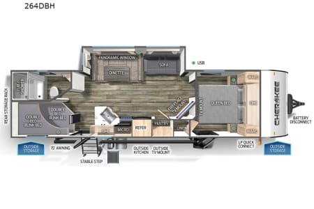 Experience your dream vacation by renting the 2021 Forest River Cherokee Limited 264DBH, a superb choice for families looking to explore in comfort and style. With its spacious layout featuring a private master bedroom and cozy rear bunkhouse, there’s ample space for everyone to relax and enjoy. This RV is equipped with modern conveniences including a well-appointed kitchen, entertainment center, and generous storage, making it perfect for both short getaways and extended trips. Built with durability and quality in mind, the Cherokee Limited 264DBH ensures a seamless and enjoyable travel experience, promising unforgettable memories on every journey.