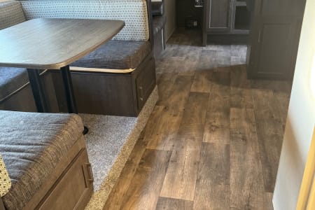 The U shaped dinning table converts into a bed and the couch also converts into a bed. Plenty of beds for a large family.