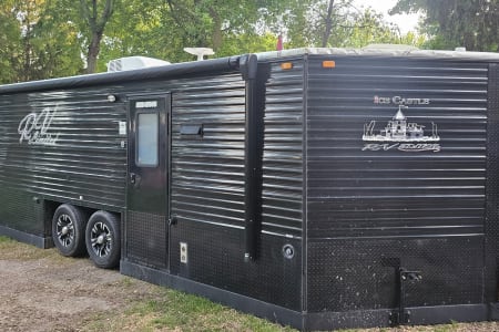 RV Limited 8 x 21 travel trailer with air conditioning, 30,000 BTU furnace, full shower, toilet, range with oven, microwave, smart tv, Bluetooth radio and electric awning. Sleeps up to 5 with room for an air mattress. Has couch that pulls out, 2 bunks and a kitchen table that turns into a bed.
