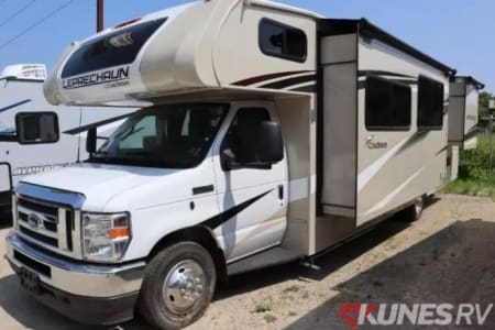 The 2023 Coachmen Leprechaun Ford E-450 (7.3L V8 gas engine) is a Class C RV that promises comfort, convenience, and performance for all your travel adventures. This RV is finished in a stylish 319MB Beige exterior color, while the interior boasts a luxurious Jasper color scheme.