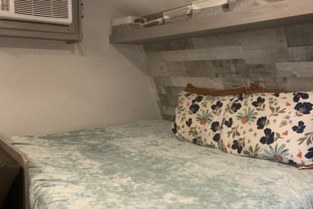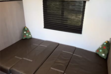 Full shower and toilet and bunch beds in the back of the camper. A dinner table that makes into a bed. Also, a large queen bed with smart tv so you can unwind.