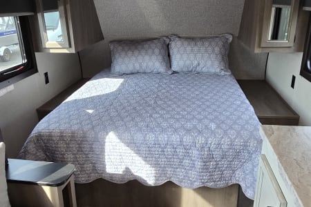 Welcome to your cozy home away from home! No matter if it is lake side in the mountains or snuggling up on the beach this camper is perfect for your trip!
