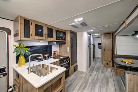- **Full Kitchen:** Equipped with all essential appliances, including an outdoor sink, shower, and refrigerator.