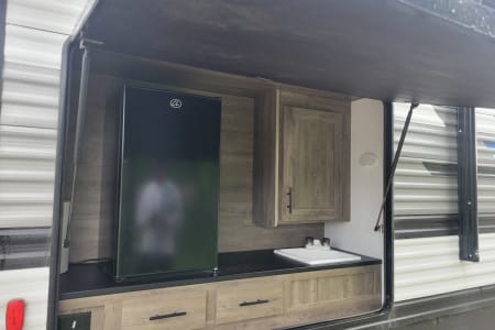- **Outdoor Amenities:** Enjoy nature with outdoor conveniences like a sink, shower, and fridge.