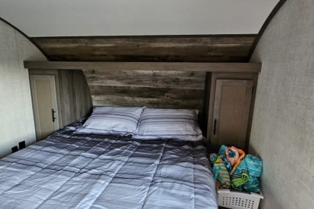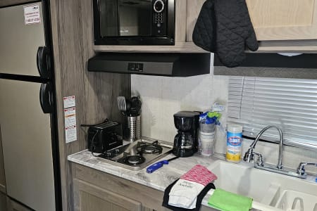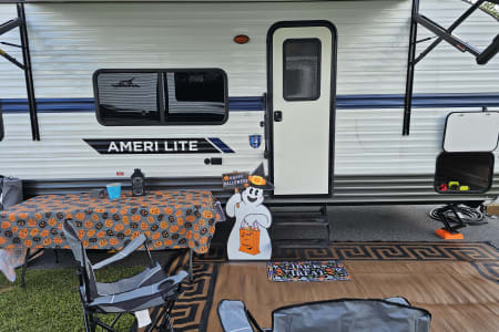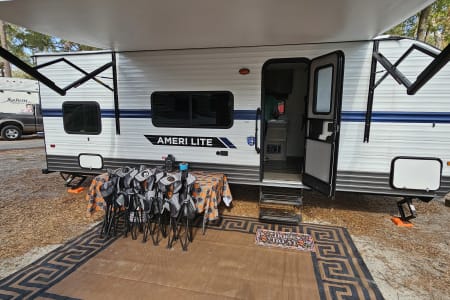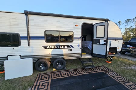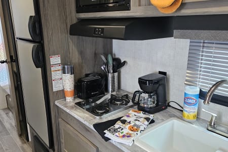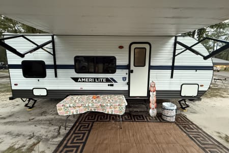 This 26 feet camper including tongue is named after our daughter Emalee. The camper is easy to operate even as a beginner camper as we were. We are a family-owned business consisting of my Husband and myself. Sometimes our 7 year old daughter comes to helps us out too. We will deliver and set up the camper for 9you. This camper comfortably sleeps 5 and will keep you cool on hot days with a cold blowing AC. The electric awning can tilt when you have a rainy day. You can cook inside with the 2-burner stove to stay out of the weather. We pride in keeping camper clean and full of supplies so you can enjoy your adventure. There is a cleaning fee and dumping fee per rental so if you instabook camper you will have those fees added on to your rental. Also anything over 40 miles will reflect a change in the delivery fee.