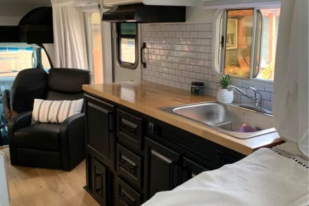 This 24 foot motorhome is easy to drive and makes a great adventure rig for a small family, couple, or lone wolf! Comes with everything you need for camp fare cooking, as well as all the comforts of home. The inside is adorably decorated, making this more cozy than modern sterile campers.