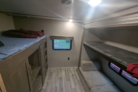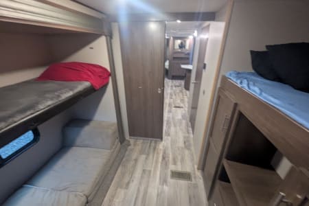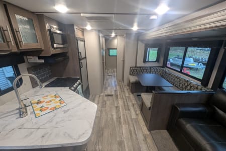 Enjoy our spacious and clean 2019 Keystone Hideout 31'. It comes complete with everything that you will need to make this your home away from home. Ice cold air conditioning or heater to keep you cozy. The master suite has a queen size bed with a real mattress, flat screen TV, and ample storage. It has up to six options for sleeping with a pull out couch, convertible dining area and separate back bedroom. The kitchen area has a three burner gas stove, fridge & freezer and a sink with optional extra counter space. The bathroom has a standup shower/tub combo as well as it's own entrance from outside the camper. Outside you have a power awning with an led light strip, hook ups for outside TV and audio. There is an outdoor shower as well as an outdoor kitchen area with gas pull out stove, sink and a small fridge. The trailer comes equipped with an electric crank for raising and lowering the tow hitch and newly upgraded stabilizing jacks from the 2500lb stock ones to 9000lbs. This trailer does come with the factory cold weather package. Whether it's summer or winter you can comfortably bring your family and friends for your next fun adventure!