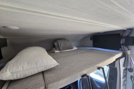 Sleeps up to 6: Full-size rear bed, convertible dinette, and over-cab bunk