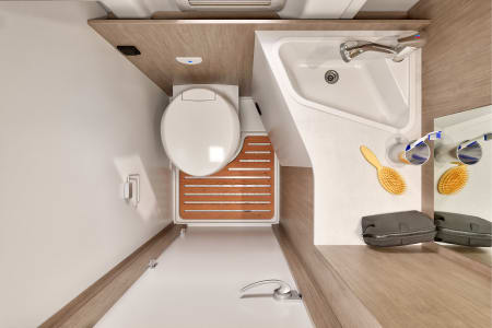 • 🚿 Bagno compatto con doccia e WC, per sentirti sempre a casa.