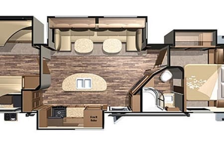 - Sleeping capacity: 8 (with a queen bed, a large transformable sofa, and a separate bunk room with 3 bunks and a dinette bed conversion)