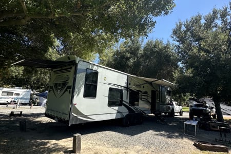 Beautiful RV with 28 Feet Of CARGO Room with a Super Spacious Living Area that included all amenities needed to make your stay with us a memorable one for you and your family.