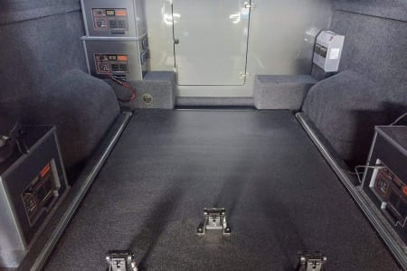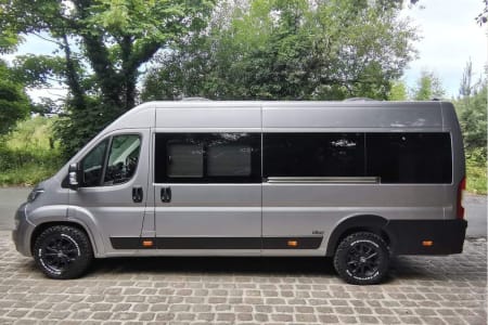 This camper van sleeps 4 adults and will also travel 3 people. This new 2020 layout from Olbel is built for the off road family life, offering a fixed French-style bed to the rear, plus daytime seating that converts to a further double bed at night, creating a comfortable 4 berth camper van.