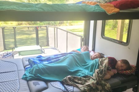 TLDR: Sleeps 7-10 dependent on size of campers. Comes with everything you need for a great camping adventure!