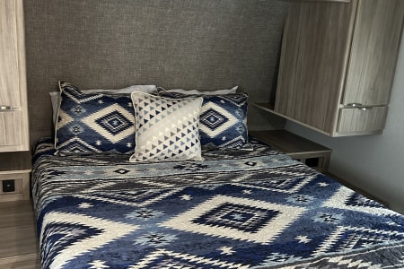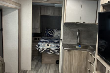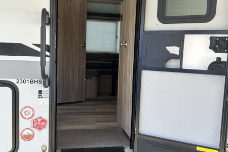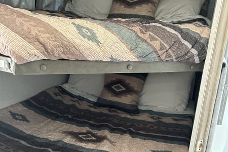 Our 8 person trailer is fully stocked and ready to hit the road! Just pack your bag & get ready for some fun! can be towed with a SUV. We did not take any short cuts in comfort or accessories. We include memory foam mattresses for the queen and 2 bunk beds (dinette turns into a sleeper sofa) included arehigh thread count sheets and blankets,