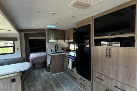 Unleash your wanderlust with Imagine Wagon, a 4-season camper, where every trip transforms into a magical adventure! This charming camper seamlessly blends modern comfort with the outdoors, featuring cozy sleeping quarters, a fully equipped kitchenette, and ample storage for all your travel essentials. Whether you’re seeking the thrill of mountain landscapes, the tranquility of a serene lakeside, or charming small towns, let us ignite your imagination and help you create unforgettable memories with family and friends. It’s a ticket to limitless exploration and cherished memories. Book now and start dreaming under the stars!