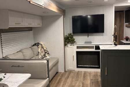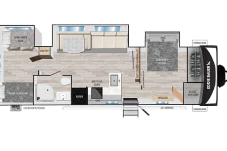Large 3 slide 2024 Eddie Bauer Bunkhouse. Your adventures will be in a beautiful 2024 Eddie Bauer 34BSBH that sleeps 7-8. It comes with all your camping essentials.