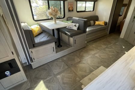 Stay cozy in any season with the auto-ignition 20,000 BTU furnace for cooler months and the 13,500 BTU A/C to keep you cool during warmer weather. We provide all the essentials, including fresh linens, blankets, pillows, towels, cookware, and dinnerware. If you don't have a hitch, we’ve got you covered with one provided at no extra charge. At pick-up, we’ll guide you through all the trailer's features to ensure a smooth start to your adventure.