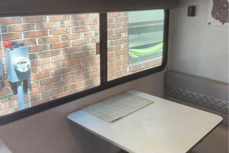The camper has 1 queen bed, 2 large(44" x 72") bunk beds and a dinette that converts to a small bed for a tiny human or child.