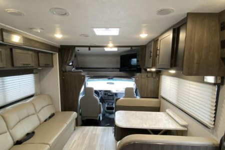 Spacious Sleeping Areas: Sleeps up to 6 with a queen bed, over-cab bunk, and convertible dinette.