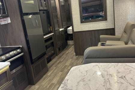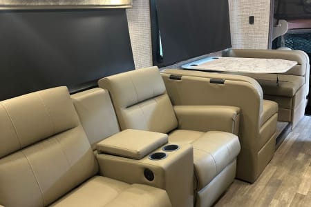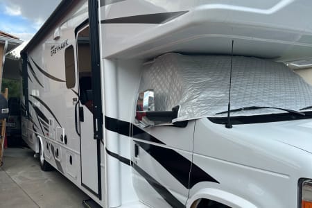 Welcome to your brand new Jayco Greyhawk motorhome, waiting for your next adventure! You will love traveling in style in this modern and spacious hotel on wheels. Big enough to have space for all your needs, but small enough to go anywhere you need and to park easily. This motorhome meets all your needs including a separate master with a queen bed, spacious indoor shower, recliner sofa chair where you can cozy up to the indoor fireplace and watch tv on the smart tv. For extra space, the dining table coverts to a bed, and there is a spacious bunk over the cab with electrical plugs and a moon roof to star gaze at night. The fully loaded kitchen is large enough to store everything you need. Fridge and freezer, oven, stove, microwave, and coffee maker. It comes loaded with all cooking and kitchen essentials. Linens include: washed and sanitized sheets on every bed, one blanket per bed and towels for up to six people. Stay hot or cold with the two air conditioning units, one in the bedroom and one in the main living area. When it’s cold the heater will warm you up in minutes, plus the fireplace to keep you extra warm. Very easy to set up. Pull in with the rear back up camera that makes backing into any stall a breeze. Everything is automatic, with one button to level it out and another to put the slide out! That’s it you’re ready to start your adventure!