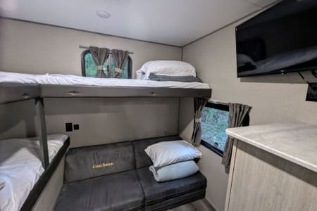 Stationary camper located at the Amelia River Campground inside Fort Clinch State Park. Fort Clinch is located in Fernandina Beach on beautiful Amelia Island.