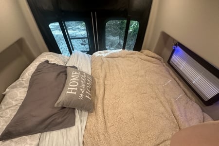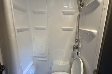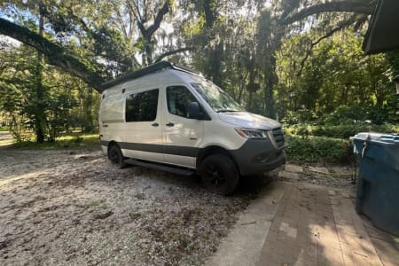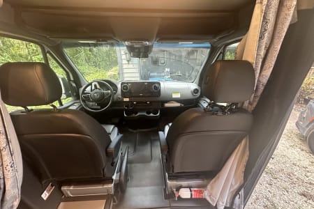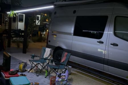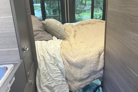 2023 Jayco Terrain, has a queen size bed in the rear, with a garage underneath the bed space to carry bicycles and etc. Also has a blow up mattress in the front. Induction stove top, with dishes and utensil's. The van also has a sink and refrigerator. The Jayco, has shore power and water hookup. Has a power awning with lights and outdoor radio.