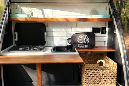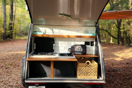 Imagine waking up to the sounds of nature, brewing coffee on the two-burner stove as the sun rises, then hitting the trail for a day of exploration. Picture relaxing under the awning with your favorite book surrounded by the peace of the wilderness. This camper gives you the freedom to make your own adventure, whether you’re seeking solitude or bringing along someone special to share the experience.