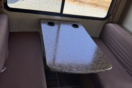There are plenty of comforts throughout this 26HE Freedom Elite motorhome by Thor Motor Coach, such as a single slide out, a full-size bathroom, plus in the front area just past the cab you will find a seating for your whole family at the dinette and sofa.