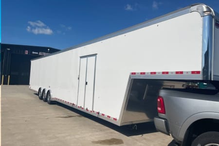 United Trailer 8.5-Wide cast aluminum corner gooseneck flat top trailer
