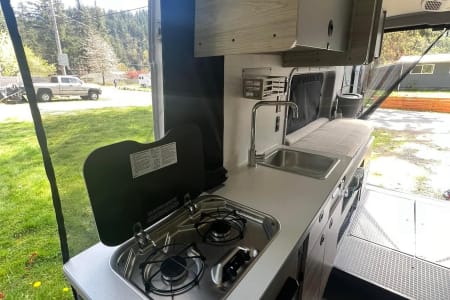 o Sleeps up to 4 people: 2 on a Murphy bed, 2 in a pop-up top with 3 zip-down windows for stunning views (Bed sheets, 4 pillows, and 2 quilt blankets included)