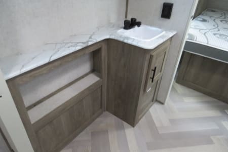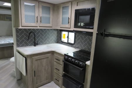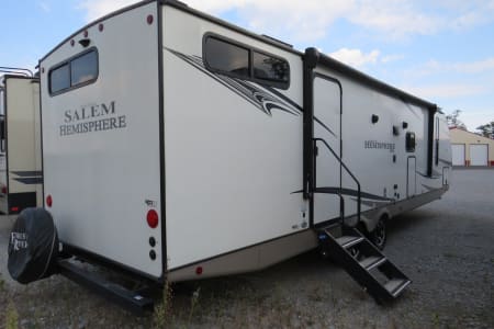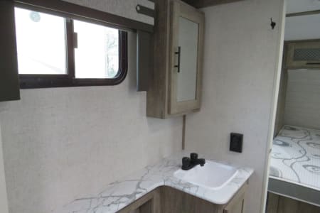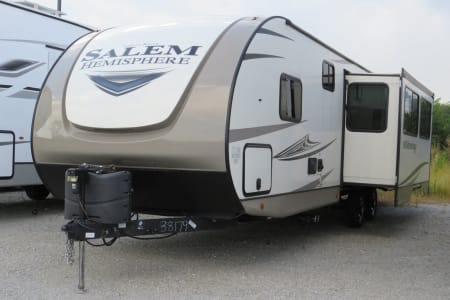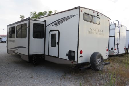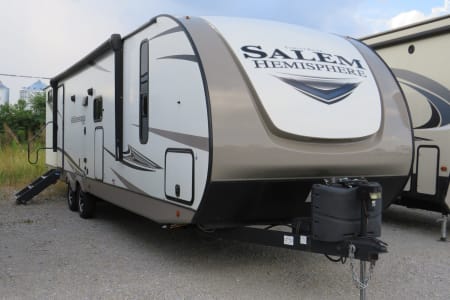 Lightweight and easy to tow, this trailer includes power stabilizer jacks, making setup a breeze. Ready for your next road trip or camping getaway!