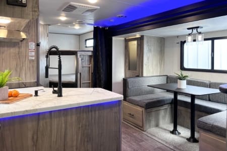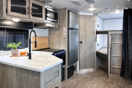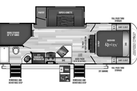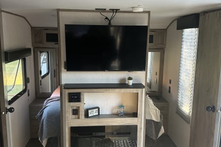 - Private Main Bedroom with updated queen mattress, not the cheap hard one that is standard in rv’s!